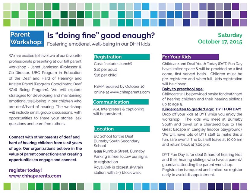 Event Title: Parent Workshop – Is “doing fine” good enough? Fostering Emotional Well-being in our DHH kids.