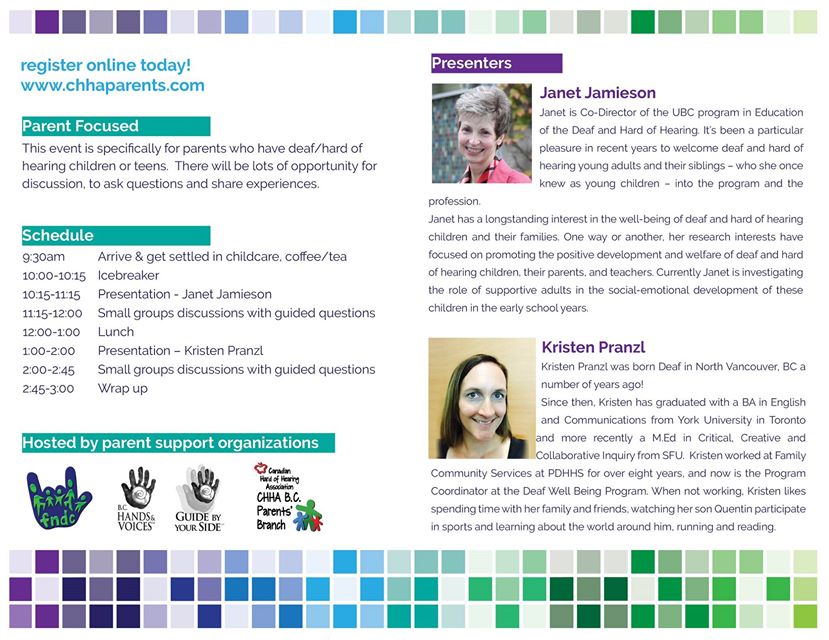 Hosts: BC Hands & Voices, Guide By Your Side, CHHA BC Parents’ Branch, & Family Network for Deaf Children