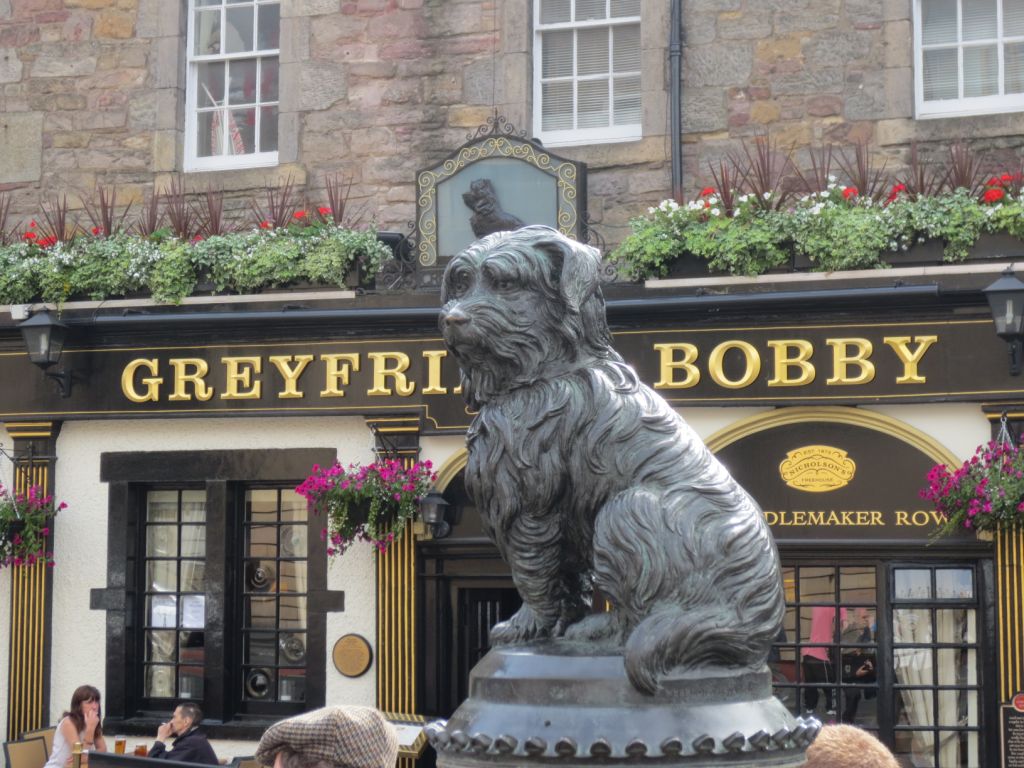 We arrived in Scotland and breezed through a few things on our To Do List, and eventually found ourselves in Edinburgh to see Greyfriar’s Bobby. Now, for those of you who haven’t heard the tale, Greyfriar’s Bobby was a very special dog who remained by his master’s grave in the churchyard in Edinburgh’s old town for 14 years after his master’s death. The local children visited him and cared for him during those years. And then, upon Bobby’s death, he was buried alongside his owner in the same churchyard.