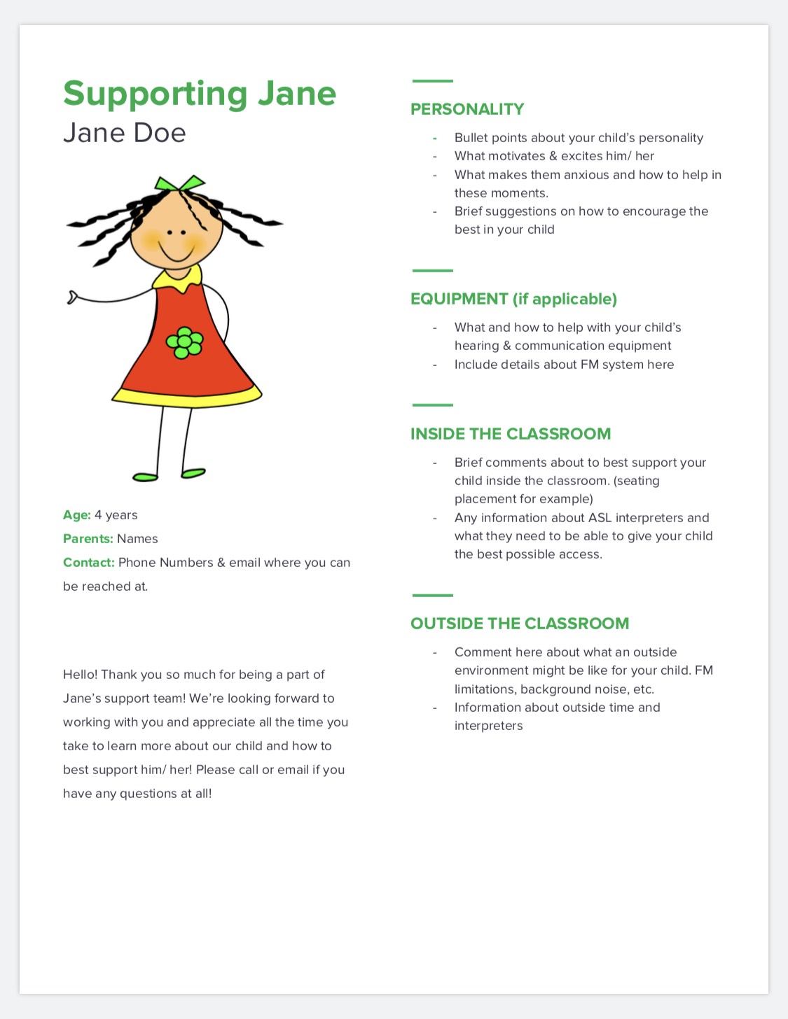 -Be sure to include a picture! Both for attention (they’re beautiful) and also to help the support person remember who your child is. Some people have many DHH kids on their caseloads.