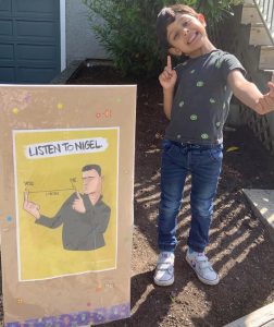 Fast forward to the last few months, Ilyan is now four and a half and seeing Nigel signing alongside Dr. Bonnie Henry has made him so proud to be deaf. When we purchased a few “Listen to Nigel” posters, Iliyan immediately asked that we hang one in his room, and post one outside our house.