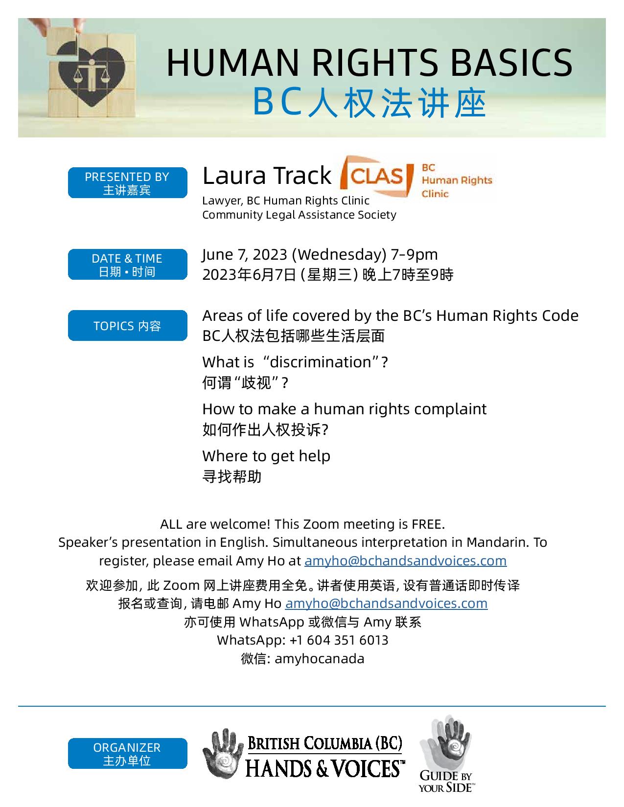 报名或查询,请电邮 Amy Ho amyho@bchandsandvoices.com