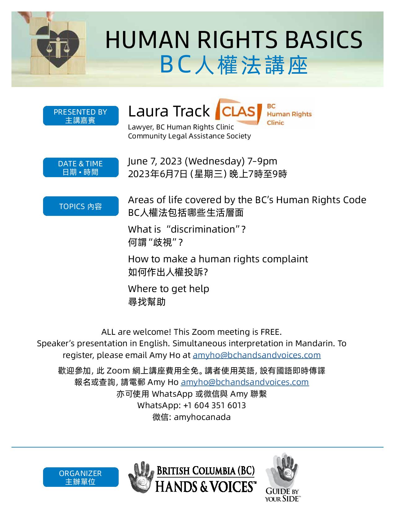 報名或查詢,請電郵 Amy Ho amyho@bchandsandvoices.com