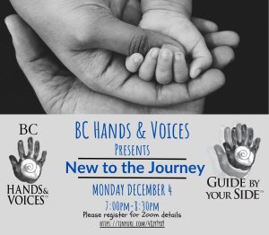 WHAT: Are you just starting on the journey of parenting a deaf/hard of hearing child? Or perhaps you’ve been on this ride for a while and now feel ready to connect with more parents? Maybe you’re at a new point in your journey or are changing course and have some questions. We are Guide By Your Side parents and BC Hands & Voices Board members supporting parents of deaf/hard of hearing children aged 0-5. Join us for an informal parent-to-parent night and ask us anything! We are here for you! ASL interpreter will be available if requested by Monday November 26th.