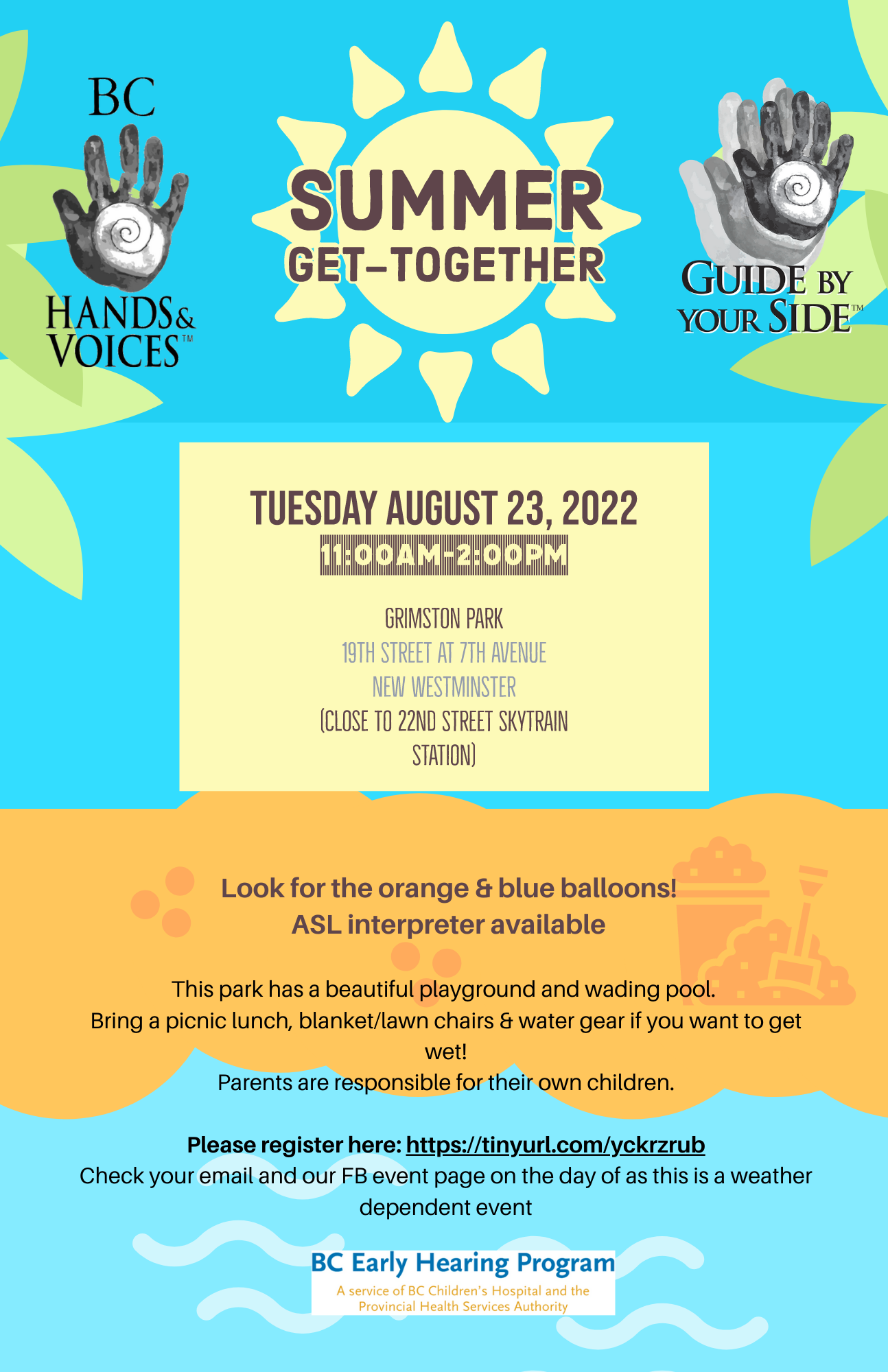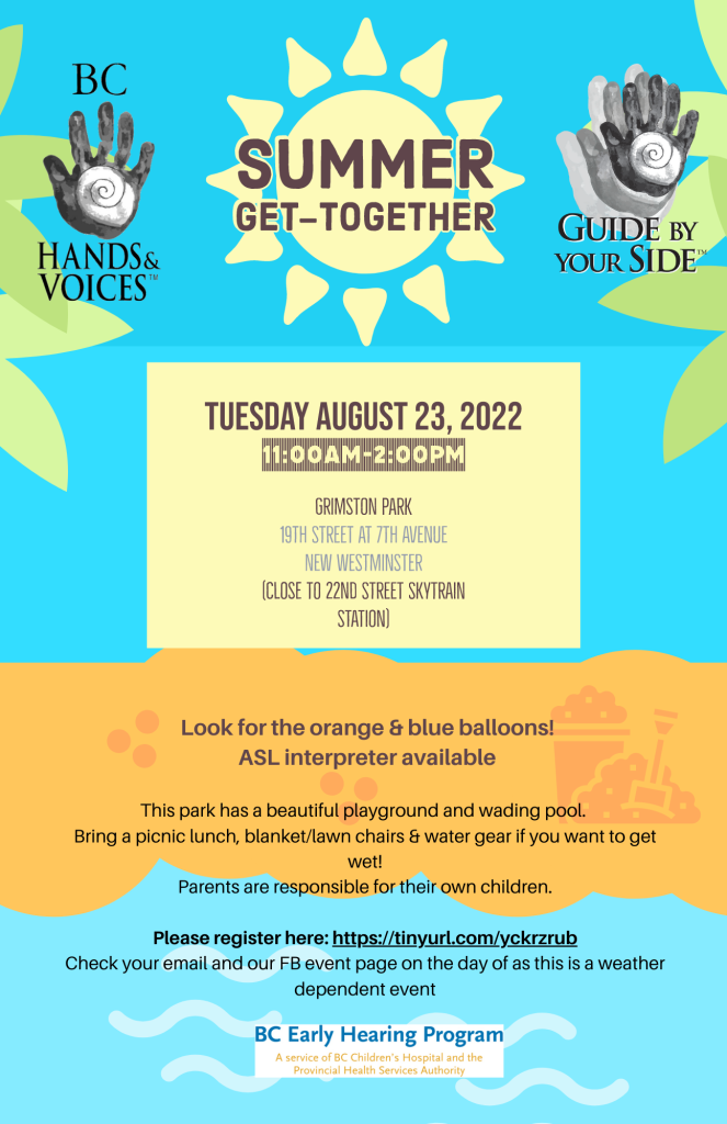 WHAT: Come and meet up with other families of young deaf/hard of hearing children! This park has a beautiful playground and wading pool. Bring a picnic lunch, blanket/lawn chairs & water gear if you want to get wet!