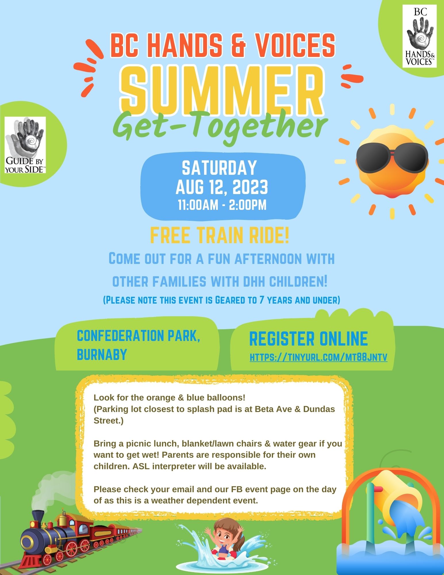 Bring a picnic lunch, blanket/lawn chairs & water gear if you want to get wet! Parents are responsible for their own children. ASL interpreter will be available.