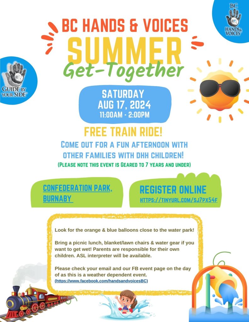 Come out for a fun afternoon with other families with dhh children! (Please note this event is geared to 7 years and under) Look for the orange & blue balloons! (Parking lot closest to splash pad is at Beta Ave & Dundas Street.)