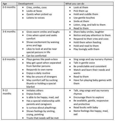 - There are also ways to support your child’s emotional development. When all (including dhh!) infants reach 9-12 months, identifying/naming emotions is an important skill to start and reinforce. Have fun copying the emotions/faces with your dhh infant/toddler. Use a similar emotion sheet while interacting/teaching emotions. This is very important in developing self validation and being able to regulate emotions, and to build/maintain positive and healthy relationships.